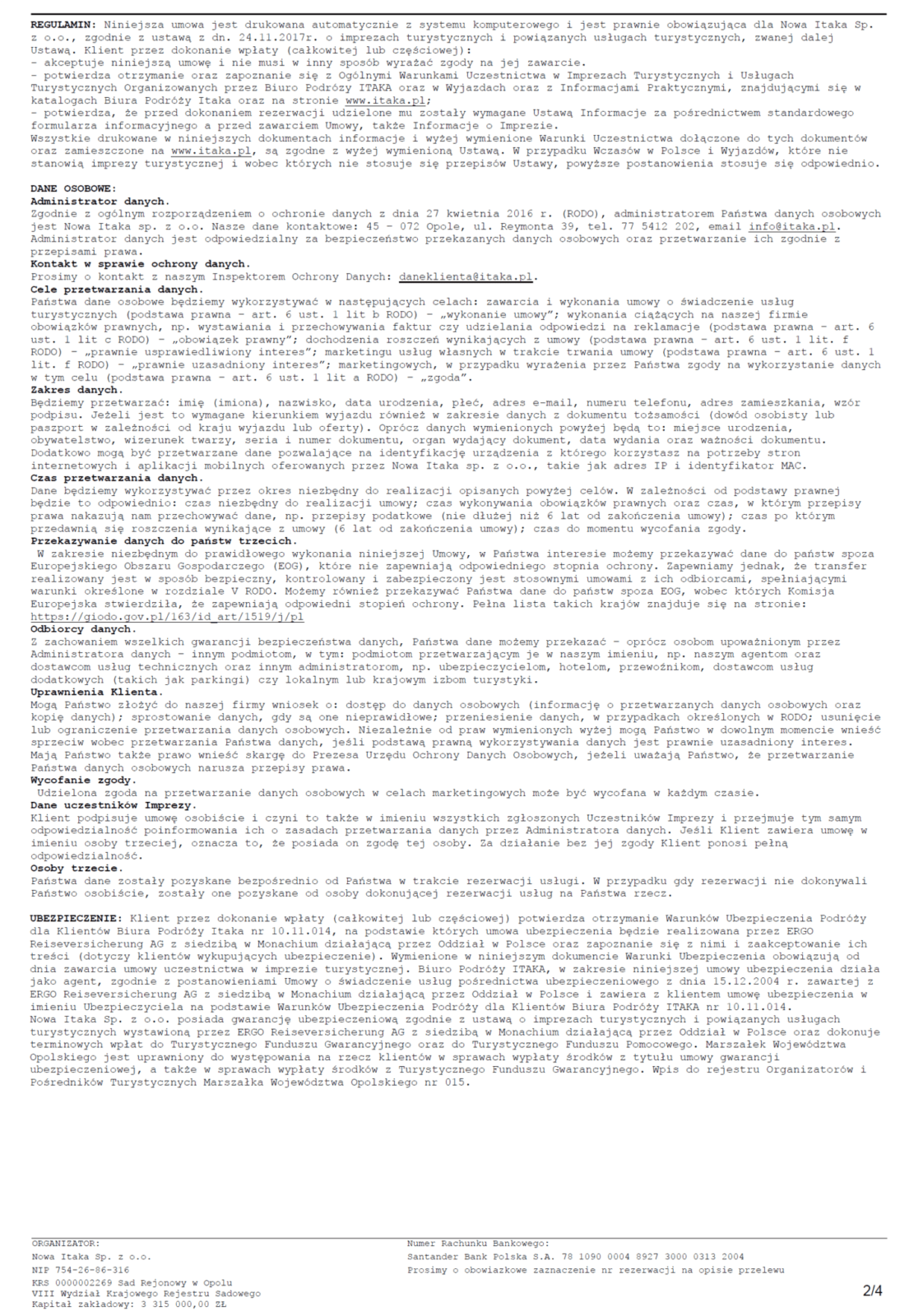 [UWAGA]: Przypomnijmy, że w SFI jest mowa m. in. o tym, że mamy do czynienia z umową o udział w imprezie turystycznej oraz, że Nowa Itaka sp. z o.o. będzie ponosiła pełną odpowiedzialność za należytą realizację całości imprezy turystycznej.